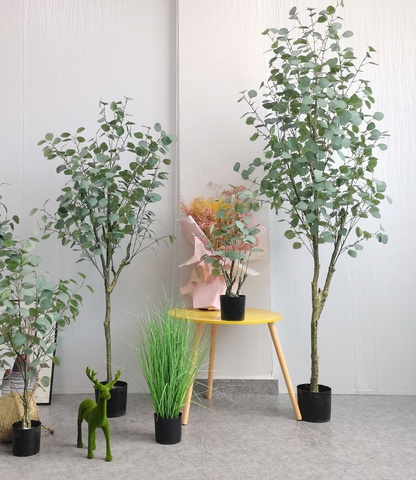 कपड़े पत्ता पेड़ Faxu पैसे पेड़ घर की सजावट के लिए कृत्रिम पौधों नीलगिरी पेड़